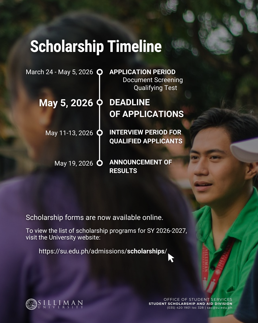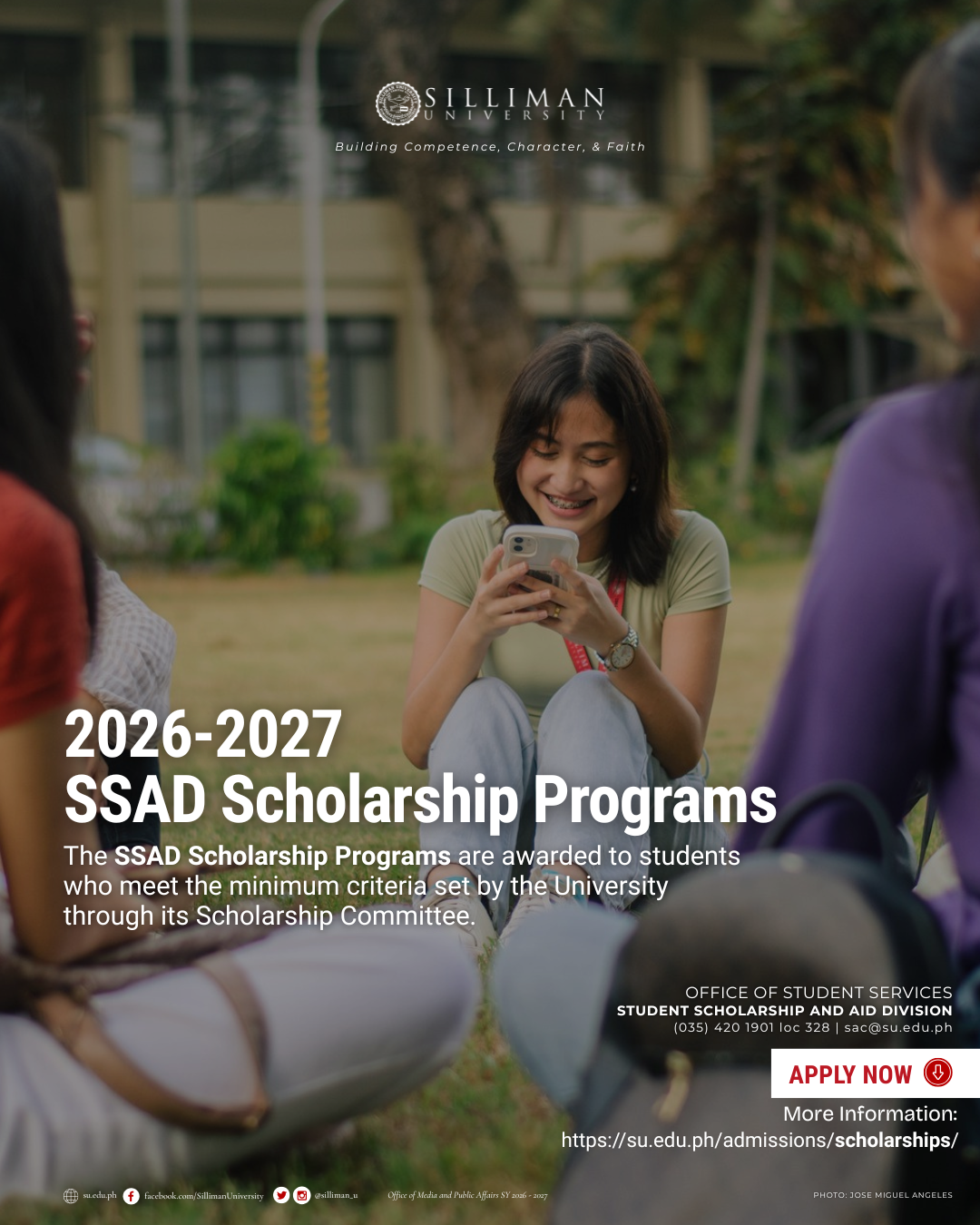 - Submit the application portfolio containing the requirements to the SU Scholarships and Aid Division at [email protected].