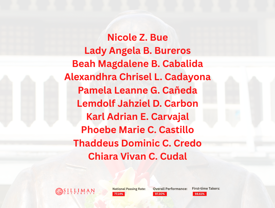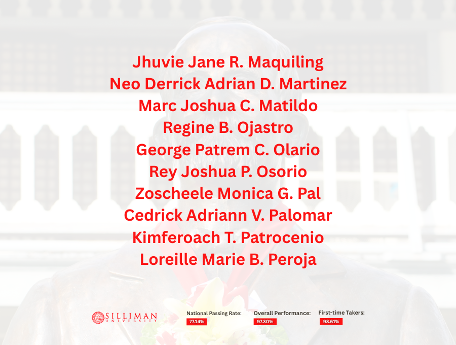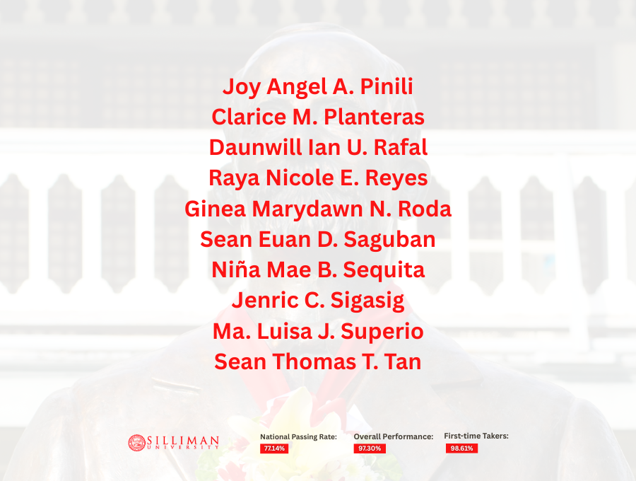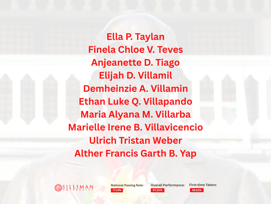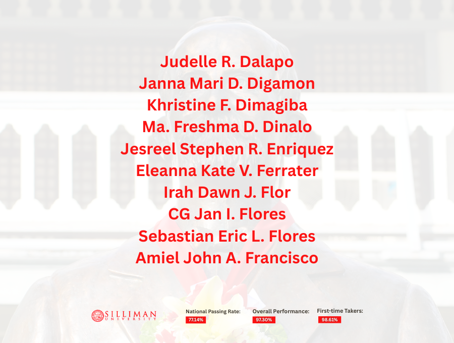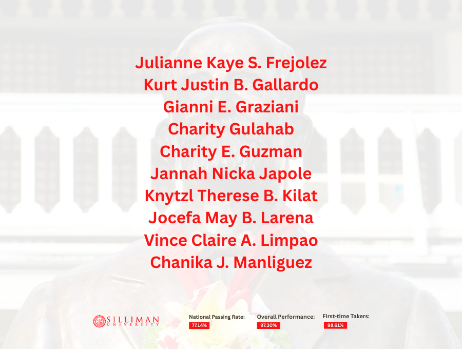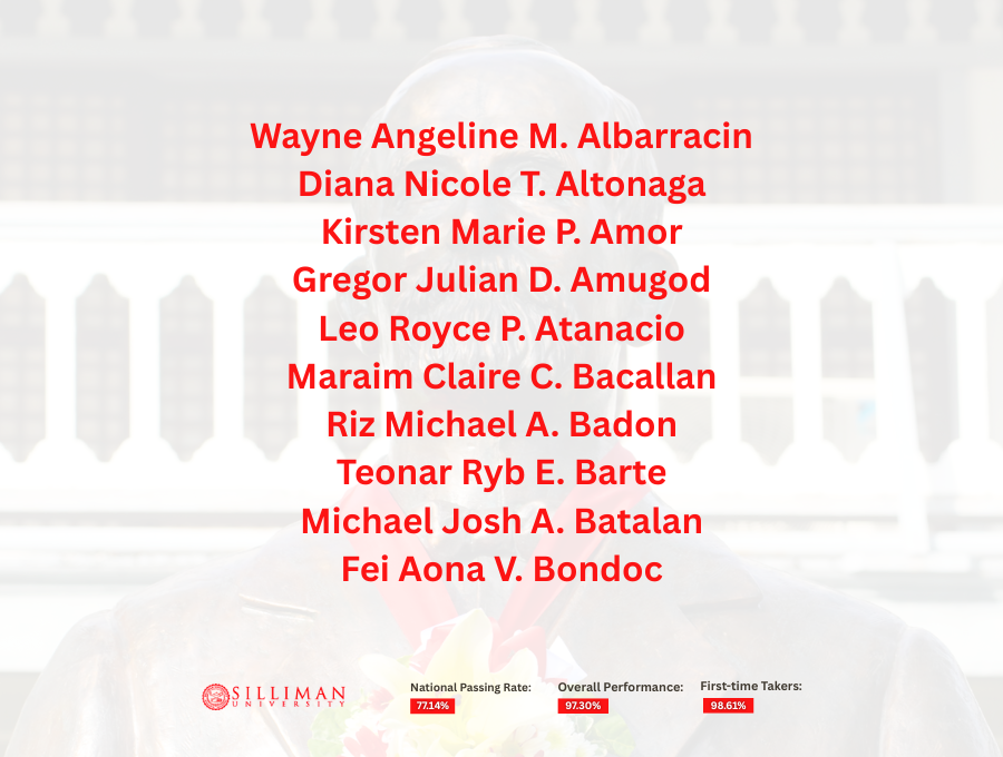 Silliman University achieved an overall passing rate of 97.30%, with first-time takers recording an impressive 98.61 percent. This performance placed SU second among the country’s top-performing schools in the 50–99 takers category.