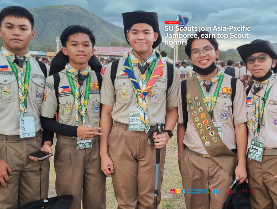 Representing the Silliman University Scouting Movement and the Negros-Oriental Siquijor Council, the SU contingent included Eagle Scout Dale Andrew Dy of the College of Engineering and Design; Venturer Scout Marc Nathaniel Batulan of Senior High School; Venturer Scout Jason Godsent Acosta; and Explorer Scouts Raphael Salvoro and Lance Guian A. Ozoa, both from Junior High School. They were part of a 19-member delegation accompanied by five adult leaders.