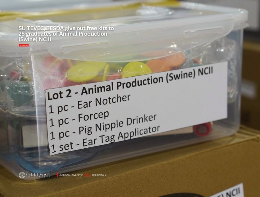 On March 6, 2026, the Technical Education and Skills Development Authority (TESDA), through the Silliman University Technical Educational Vocational and Entrepreneurial Center (SU TEVEC), distributed free tool kits to 25 graduates of Animal Production (Swine) NC II at the SUGA Center of the SU Farm.